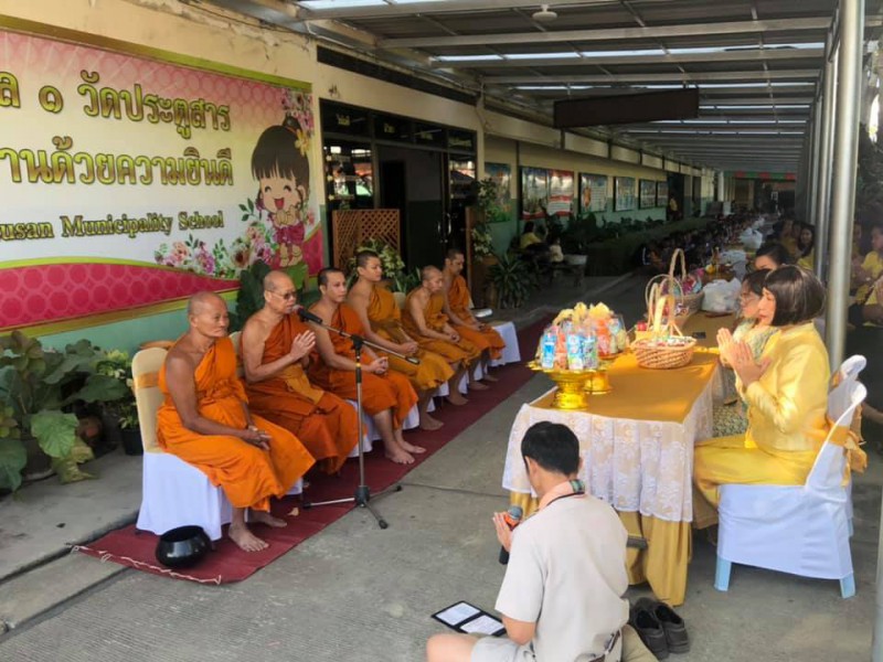 เมื่อวันที่ 4 ธันวาคม 2562 เวลา 09.30 น. ผอ.มยุรี ใบบัว ผู้อำนวยการสถานศึกษา พร้อมคณะครู บุคลาการทางการศึกษา และนักเรียนทุกคน ร่วมทำบุญตักบาตรข้าวสารอาหารแห้ง เนื่องในวันพ่อแห่งชาติ 5 ธันวาคม 2562 ซึ่งเป็นวันคล้ายวันพระบรมราชสมภพพระบาทสมเด็จพระบรมชนกาธิเบศร มหาภูมิพลอดุลยเดชมหาราช บรมนาถบพิตร เพื่อสำนึกในพระมหากรุณาธิคุณพระบาทสมเด็จพระบรมชนกาธิเบศร มหาภูมิพลอดุลยเดชมหาราช บรมนาถบพิตร ณ บริเวณโรงเรียนเทศบาล 1 วัดประตูสาร