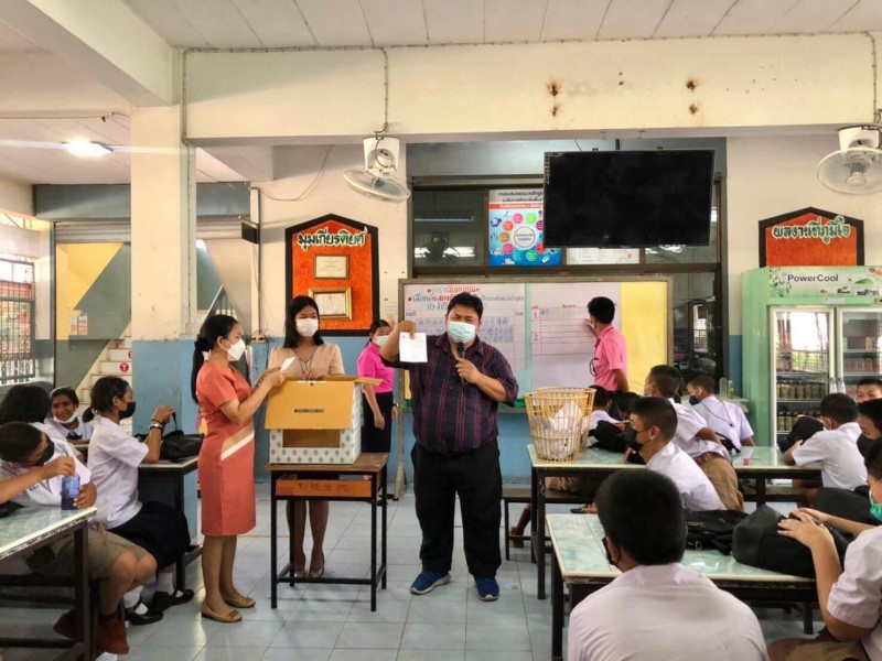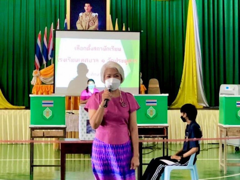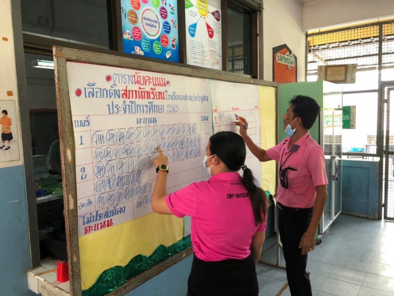 วันที่ 26 กรกฎาคม 2565 ตามโครงการส่งเสริมประชาธิปไตยในโรงเรียน ได้จัดให้มีการเลือกตั้งสภานักเรียน ประจำปีการศึกษา 2565 โดย นางมยุรี ใบบัว ผู้อำนวยการสถานศึกษา นางสาวสุนันทา พวงดอกไม้ รองผู้อำนวยการสถานศึกษา นางสาวชลธิชา โตลาภ รองผู้อำนวยการสถานศึกษา คณะครู และนักเรียน ได้มีส่วนร่วมในการลงคะแนน เพื่อหาผู้ที่มีคุณสมบัติเหมาะสมในการปฏิบัติหน้าที่สภานักเรียน |