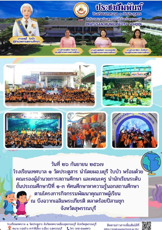 กิจกรรมทัศนศึกษาหาความรู้ภายนอกสถานศึกษา ของระดับชั้นประถมศึกษาปีที่ 1-3 ปีการศึกษา 2567
