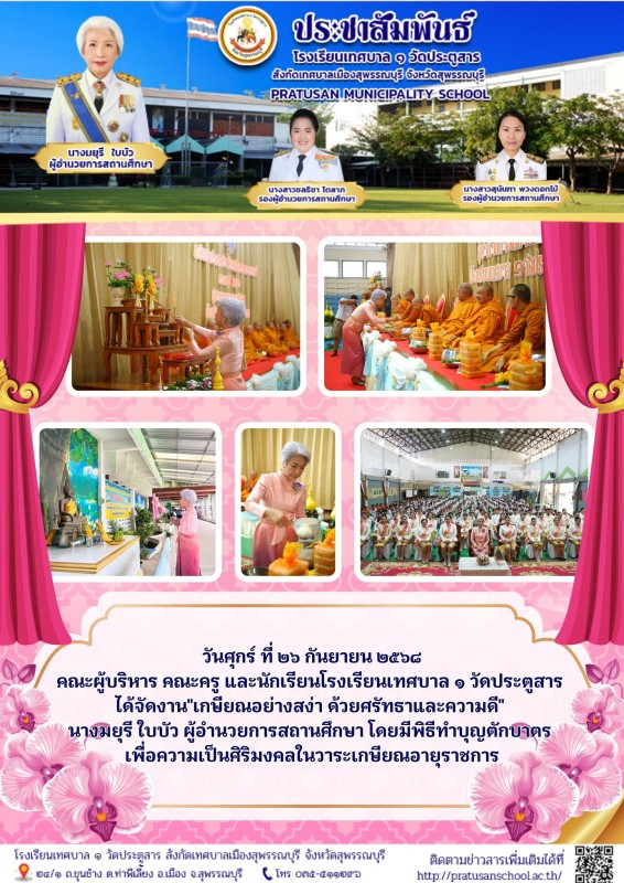 พิธีทำบุญตักบาตร เนื่องในวันเกษียณอายุราชการผู้อำนวยการสถานศึกษา