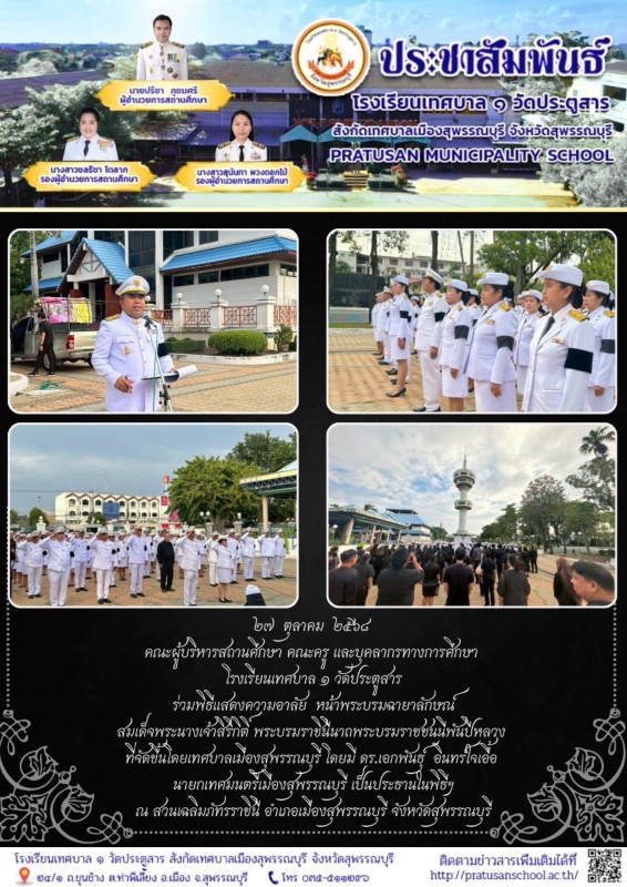 ผู้บริหารสถานศึกษา คณะครู และบุคลากรทางการศึกษา ร่วมถวายความอาลัยแด่สมเด็จพระนางเจ้าสิริกิติ์ พระบรมราชินีนาถ พระบรมราชชนนีพันปีหลวง