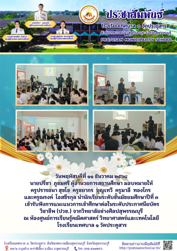 แนะแนวการศึกษาต่อ นักเรียนระดับชั้นมัธยมศึกษาปีที่ 3