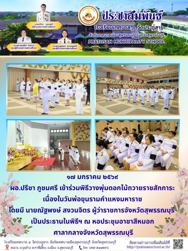 ผู้อำนวยการสถานศึกษาร่วมพิธีวางพุ่มดอกไม้ถวายราชสักการะเนื่องในวันพ่อขุนรามคำแหงมหาราช