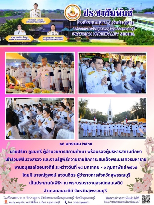 คณะผู้บริหารสถานศึกษาร่วมพิธีบวงสรวงถวายราชสักการะสมเด็จพระนเรศวรมหาราช ณ พระบรมราชานุสรณ์ดอนเจดีย์็