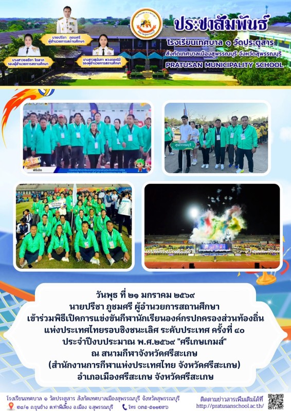 ผู้อำนวยการสถานศึกษาร่วมพิธีเปิดการแข่งขันกีฬานักเรียนองค์กรปกครองส่วนท้องถิ่นแห่งประเทศไทย รอบชิงชนะเลิศ ระดับประเทศ ครั้งที่ 40