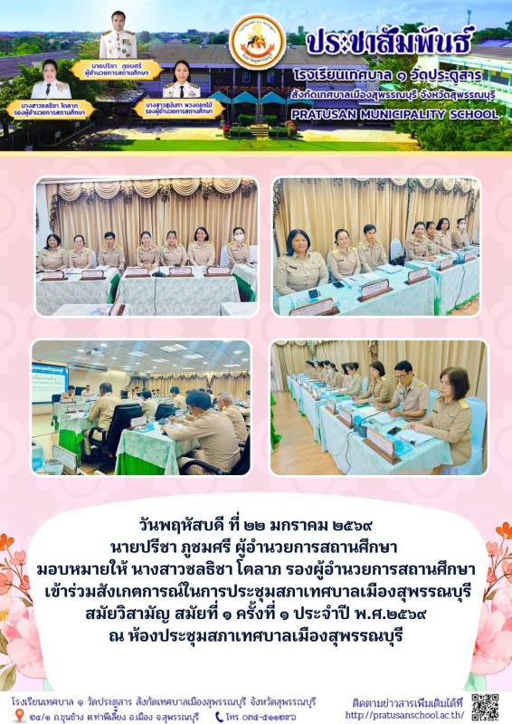 รองผู้อำนวยการสถานศึกษา ร่วมสังเกตการณ์ในกาปรระชุมสภาเทศบาลเมืองสุพรรณบุรี สมัยวิสามัญ สมัยที่ 1 ครั้งที่ 1 ประจำปี พ