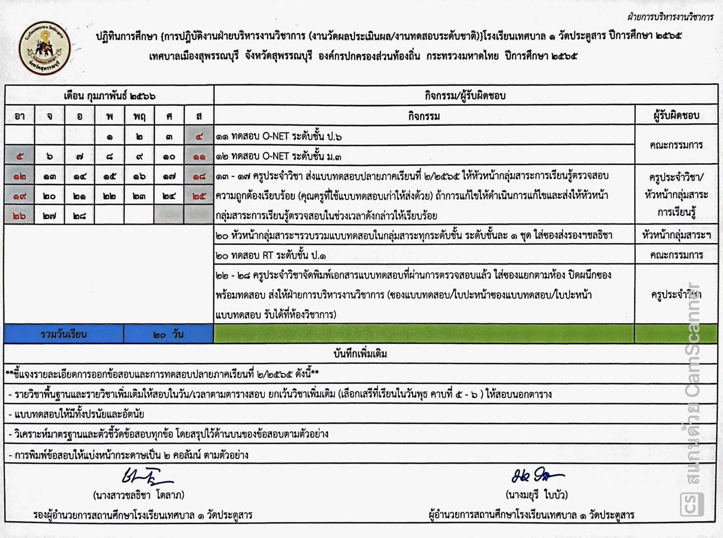 สอบปลายภาคเรียนที่ 2 ปีการศึกษา 2565 ระดับชั้นประถมศึกษาปีที่ 1-5 และชั้นมัธยมศึกษาปีที่ 1-2